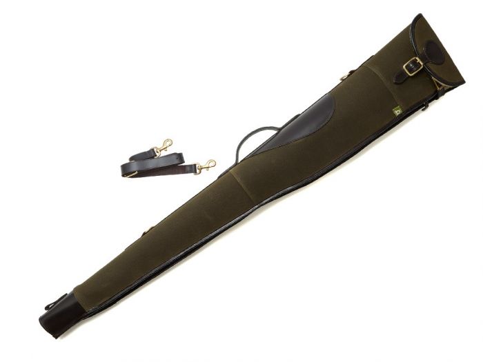 The Chatham Waxed Canvas Full Zip Gun Slip in this classic Green colour with buckle fastening for ease of access, the dark brown leather details gives a modern and high quality Gun slip at an effective price.