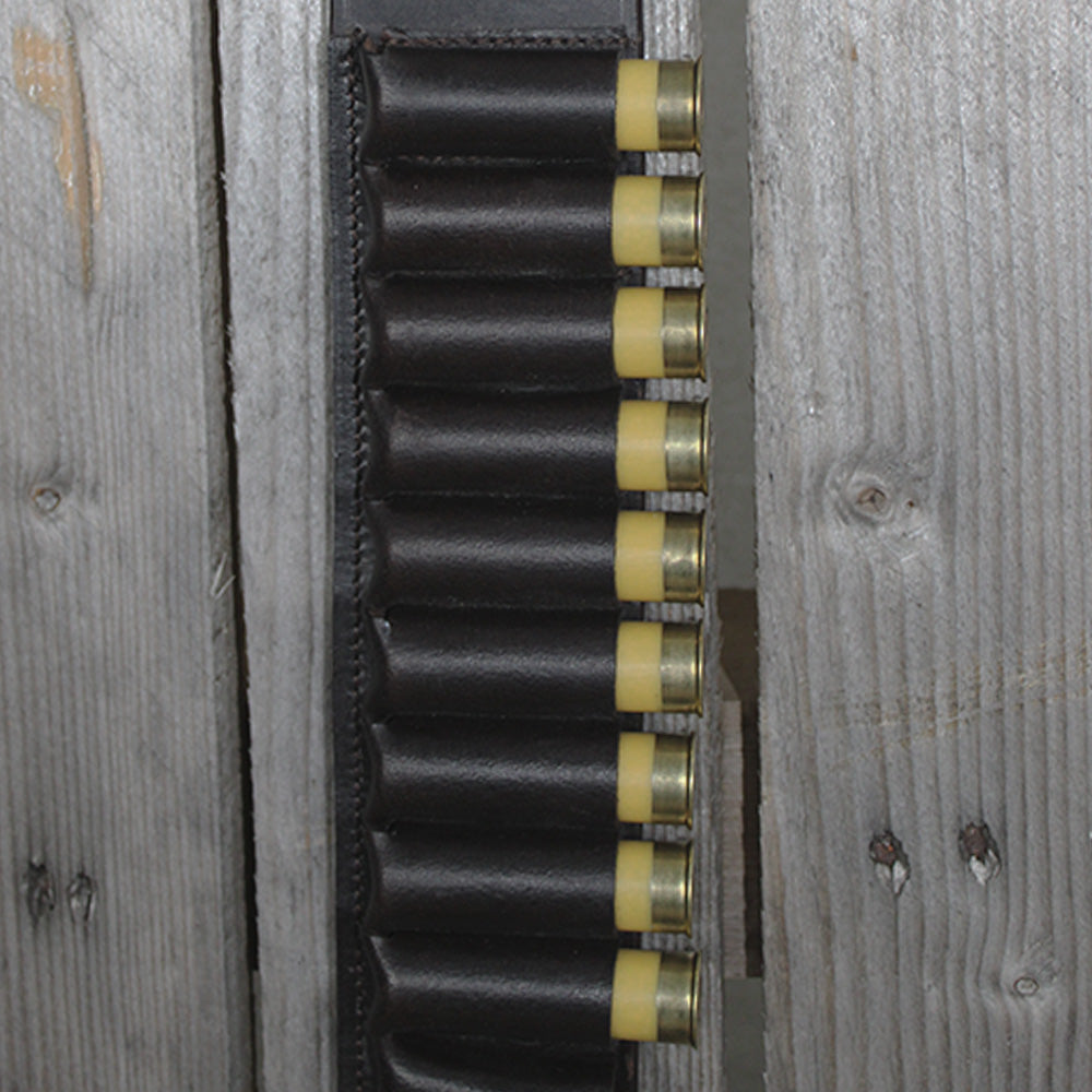 A traditionally styled 12 or 20 Gauge Closed Loop Leather Cartridge Belt. Crafted from fine, hand-oiled saddle leather it has an adjustable waist size from 34-50 inches. It holds 25 cartridges and has captive ends on the closed loops. With solid brass fittings.