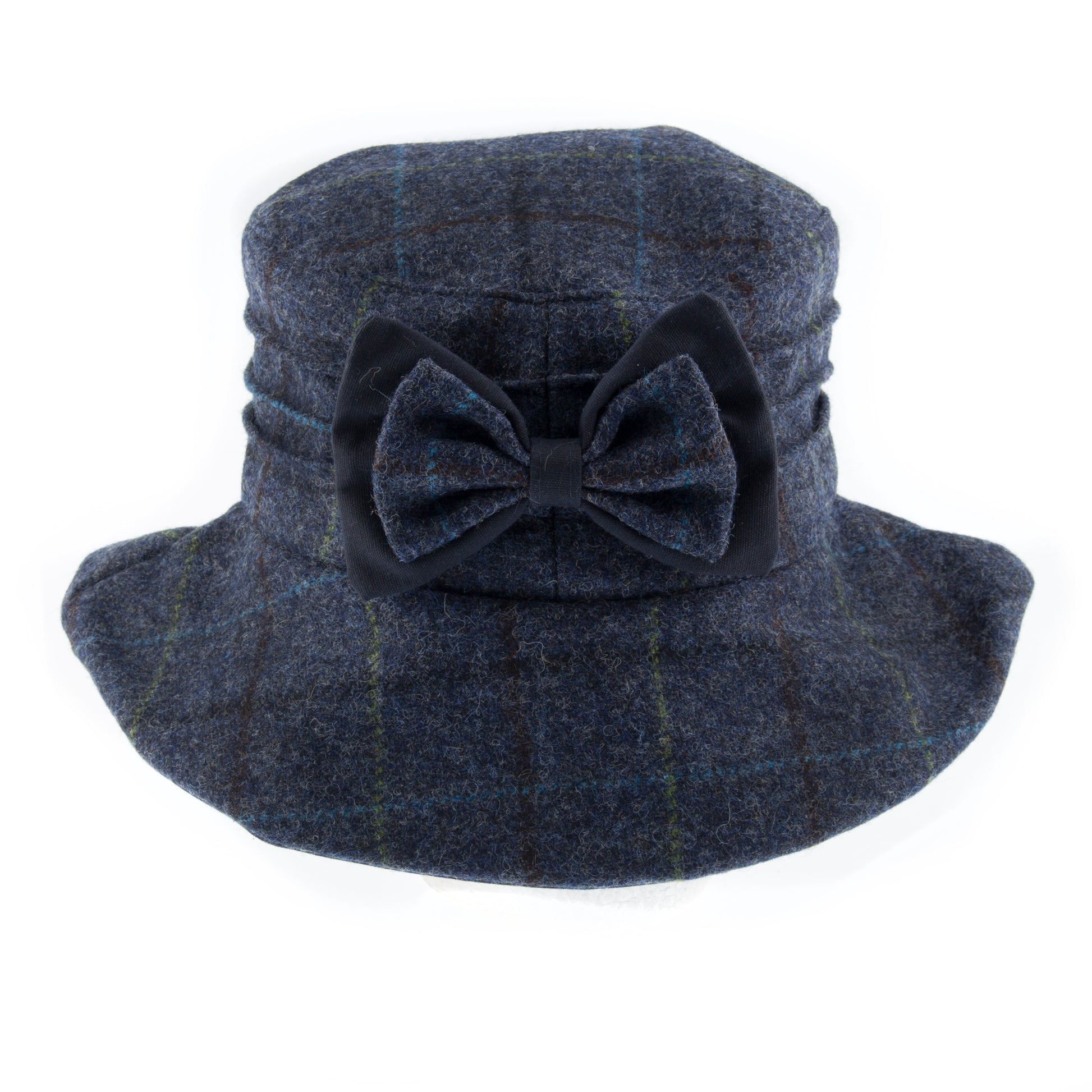 This Ladies Blue Tweed Bucket Hat made from the one of the finest wool makers in the UK Abraham Moon, A beautiful Bow detail is the perfect finishing touch, also with a wide brim and deep crown. Comes in one size at 57cm.