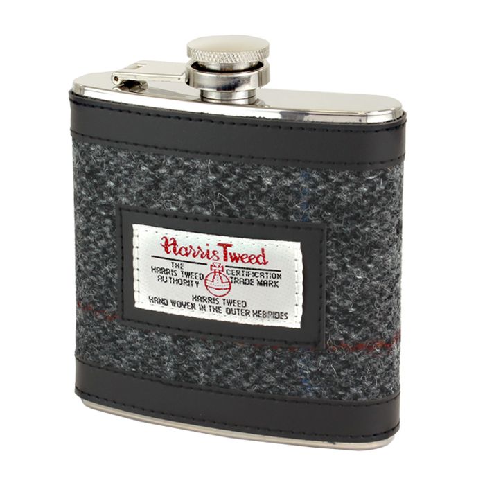 Harris Tweed Hip Flask in Dark Grey Check Tweed