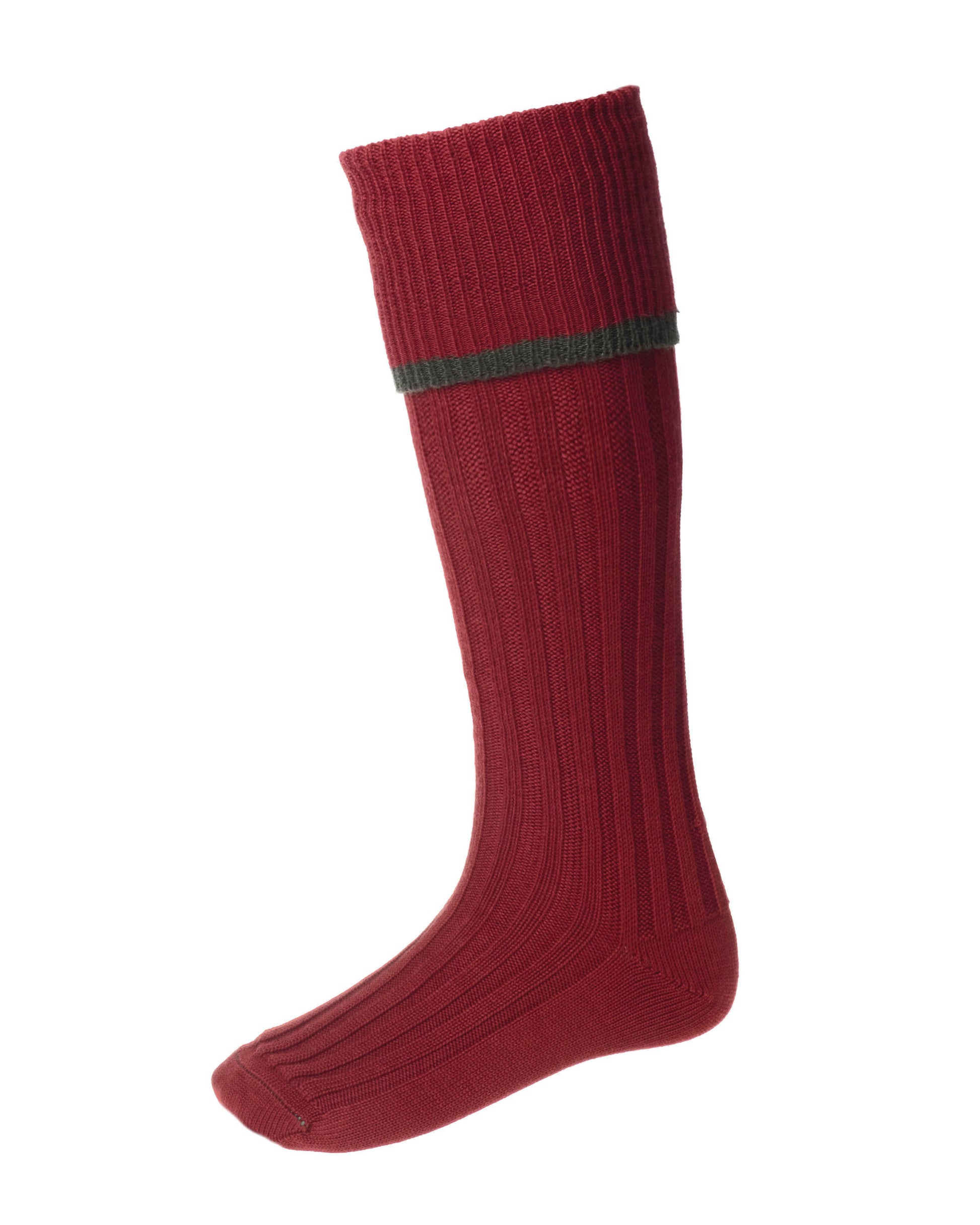 The House of Cheviot socks are the finest quality country socks, made in Scotland using the finest Merino Wool. The Estate in Brick Red country sock with the spruce green trim, is an ideal sock out in the field or round the woods.
